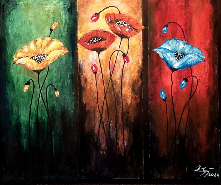 Színes virágok.   60x50 cm                                                             Színes virágok.  35x25 cm.