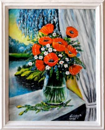 Vegyes virágok vázában                                        Pipacsok az ablakban.